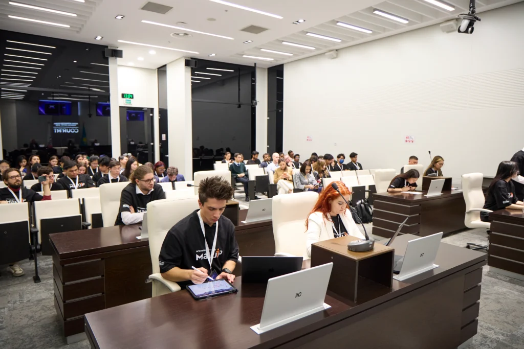 Participants were divided into Russian and English leagues. The first round, held in the format of debates titled “Lex Fantastica,” took place at the Astana International Financial Centre Court. The debate focused on a dispute over the virtual inheritance of Delal de Gogh, who passed away in 2036.